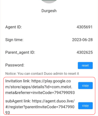 • Copy the sub-agent invitation link and share it with the invited sub-agent.