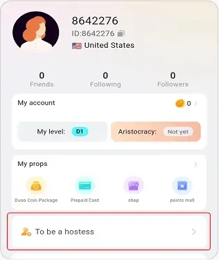 3. Go to the profile section and tap “To Be a Hostess.”