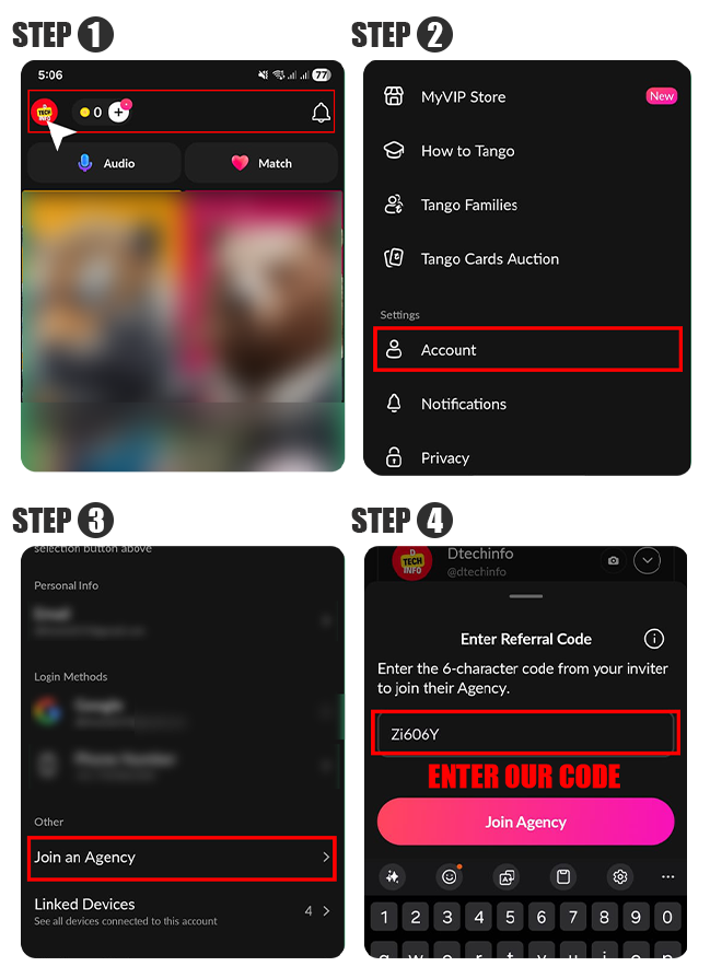 Tango Live using your link and create a new account.